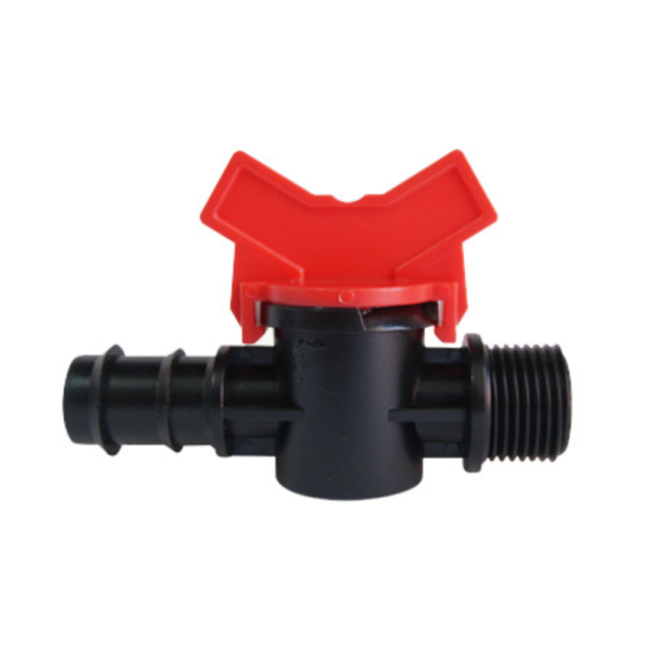 Válvula ramal rosca macho de 1/2"*16mm fabricada en polipropileno de alta calidad. Permite controlar el flujo de agua en tu sistema de riego, ideal para riego por goteo.