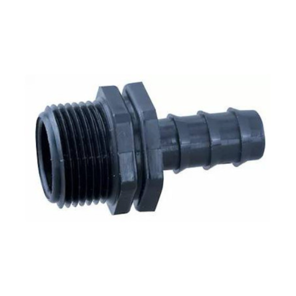 Conecte tuberías de riego por goteo de forma rápida y segura con esta unión rosca macho dentado. Fabricada en polipropileno de alta calidad, es resistente a la corrosión y a los impactos.