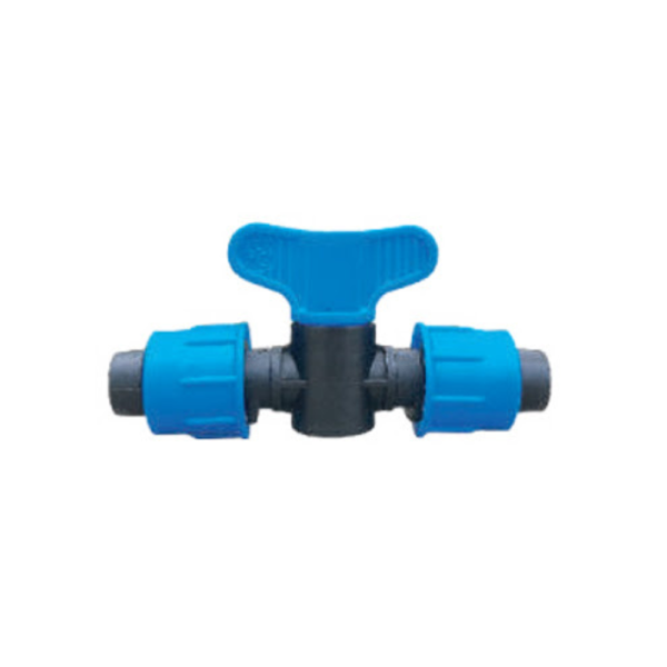 Válvula de ramal para cinta de goteo de 16 mm. Permite controlar el flujo de agua de manera sencilla y eficiente.