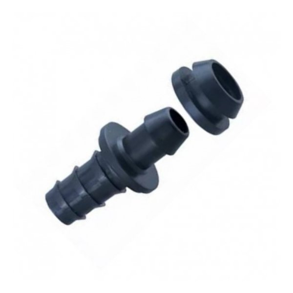 Tapón de cierre para mangueras de riego de 16 mm. Fabricado en polipropileno de alta resistencia, con protección UV. Ideal para bloquear el flujo de agua y proteger las mangueras de daños.