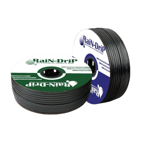 Cinta de goteo Rain Drip con goteros espaciados cada 10 cm y 20 cm. Ideal para riego de jardines, huertos y cultivos. Riego eficiente y uniforme, ahorro de agua y energía.