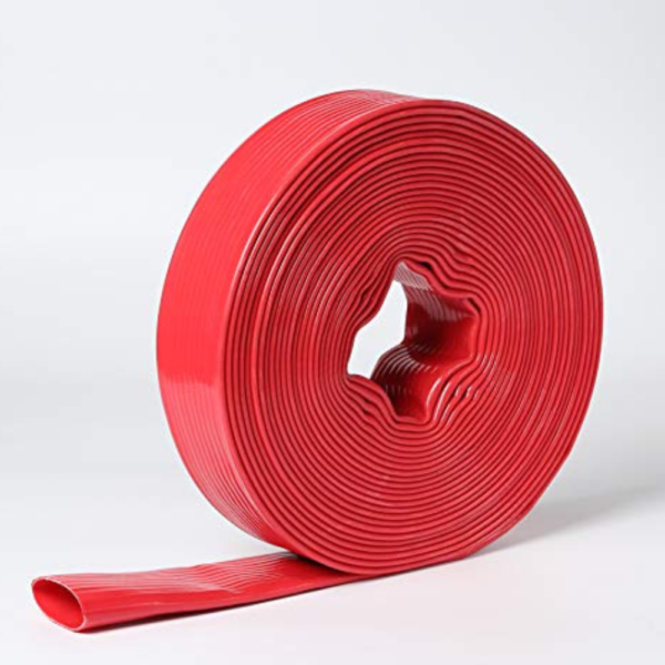 Manga plana de PVC con tejido de poliéster, de 4 bares de presión de trabajo y color azul. Flexible, resistente y de fácil instalación. Ideal para riego, agricultura, construcción, etc.