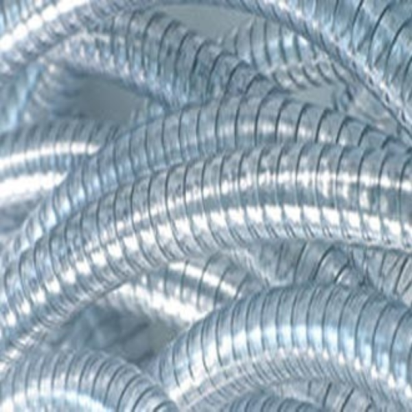 Manguera de PVC transparente de grado alimenticio con refuerzo de alambre de acero. Ideal para la succión de líquidos en aplicaciones industriales y domésticas.